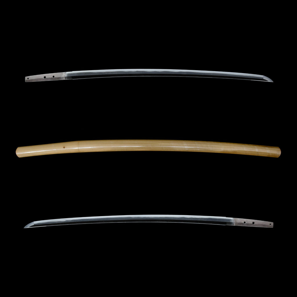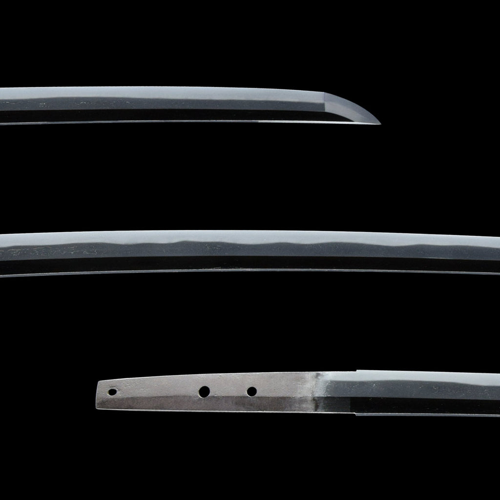 This sword was in a completely rust-covered, unaltered state before undergoing top-quality polishing, habaki crafting, and Shirasaya work at our shop, culminating in the Tokubetsu Hozon Token certificate. The extended kissaki conveys a sense of sharpness within its slender, graceful form. The jihada is well-forged with a mix of fine itame and mokume, displaying clear midare utsuri. The hamon, with its soft, delicate ko-midare and well-defined ashi and sunagashi, offers numerous highlights, making this an exceptional sword for artistic appreciation. It is highly recommended to submit it for Juyo Token appraisal.