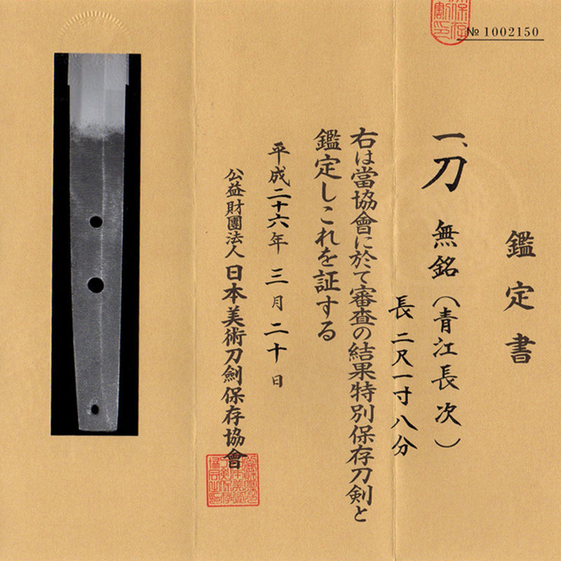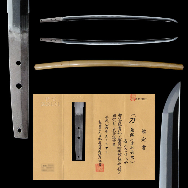 Authentic Nihontō Japanese Sword Katana Attributed to Aoe Nagatsugu 青江長次 NBTHK TOKUBETSU HOZON TOKEN Certificate