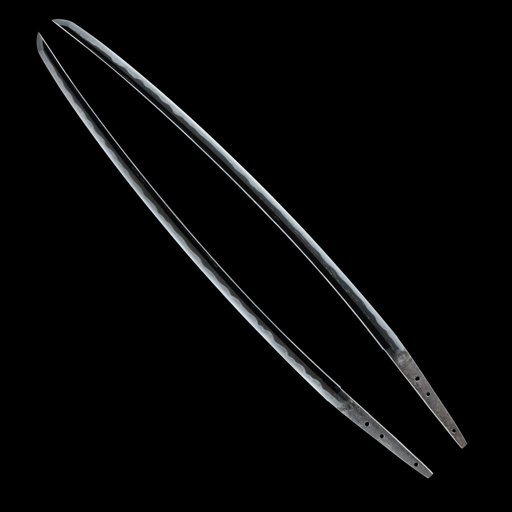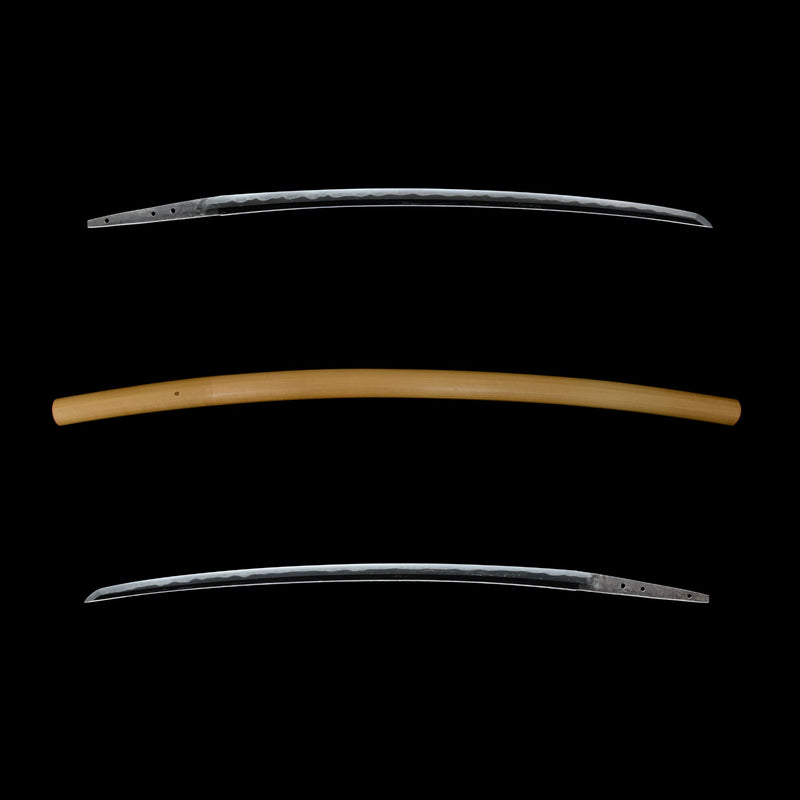 This sword, which had rusted, was polished, fitted with a white scabbard (白鞘, shirasaya), and had a new habaki made by our shop. The previous owner took great care of it, so even 20 years after polishing, it remains in excellent condition, almost like newly polished. The polishing is of the highest quality. The balance is very good with the center of gravity close to the handle, making it easy to wield. It is an excellent piece for pure artistic appreciation.