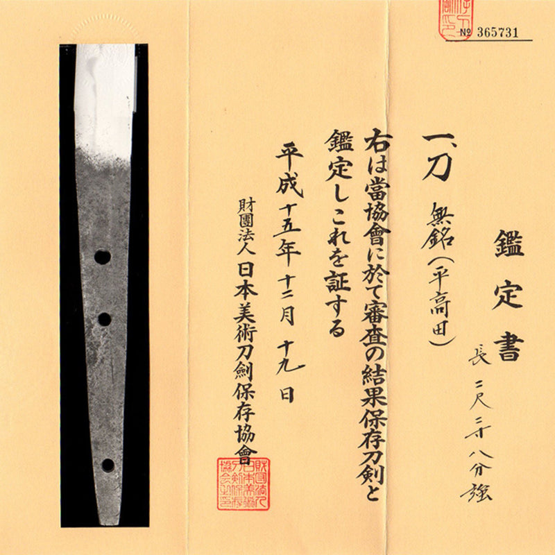 Authentic Nihontō Japanese Sword Katana Attributed to Tairatakada 平高田 NBTHK HOZON TŌKEN Certificate