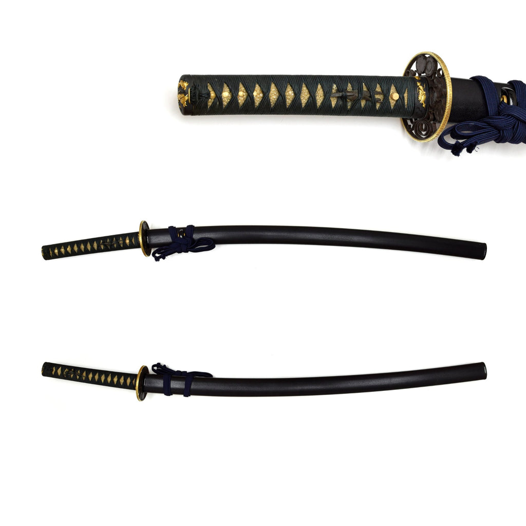 | 黒石目塗鞘打刀拵 Black stone texture lacquered saya uchigatana koshirae | |