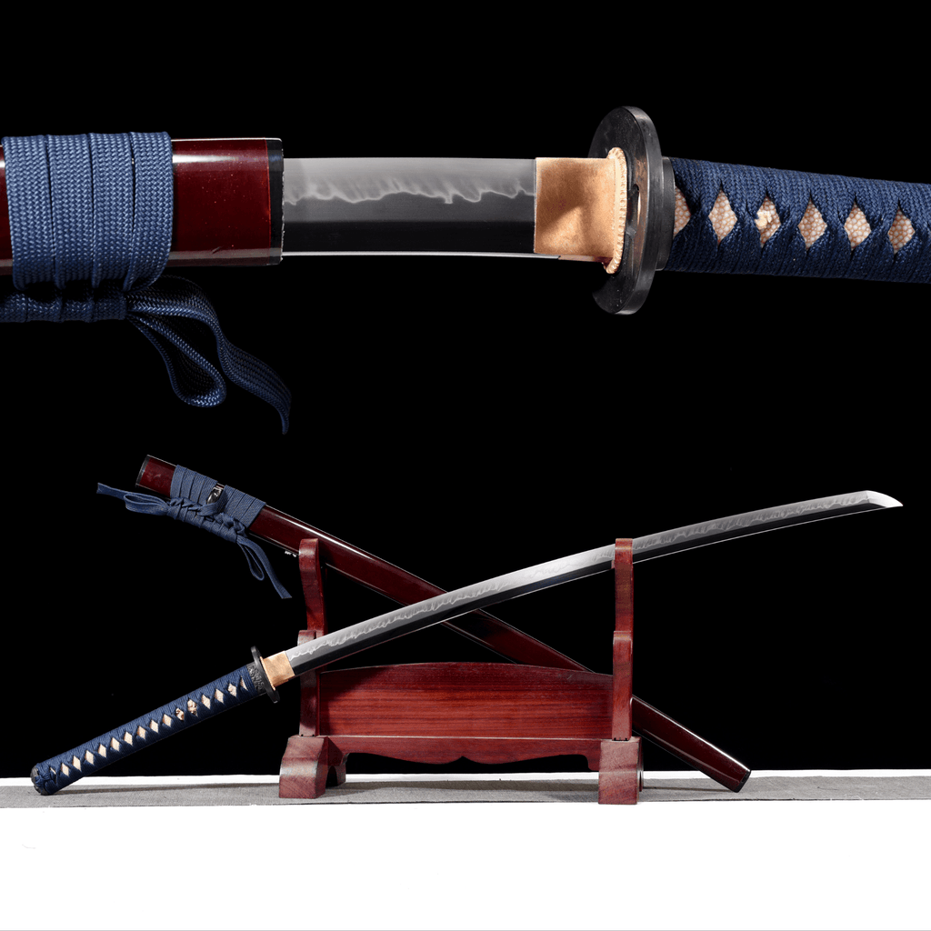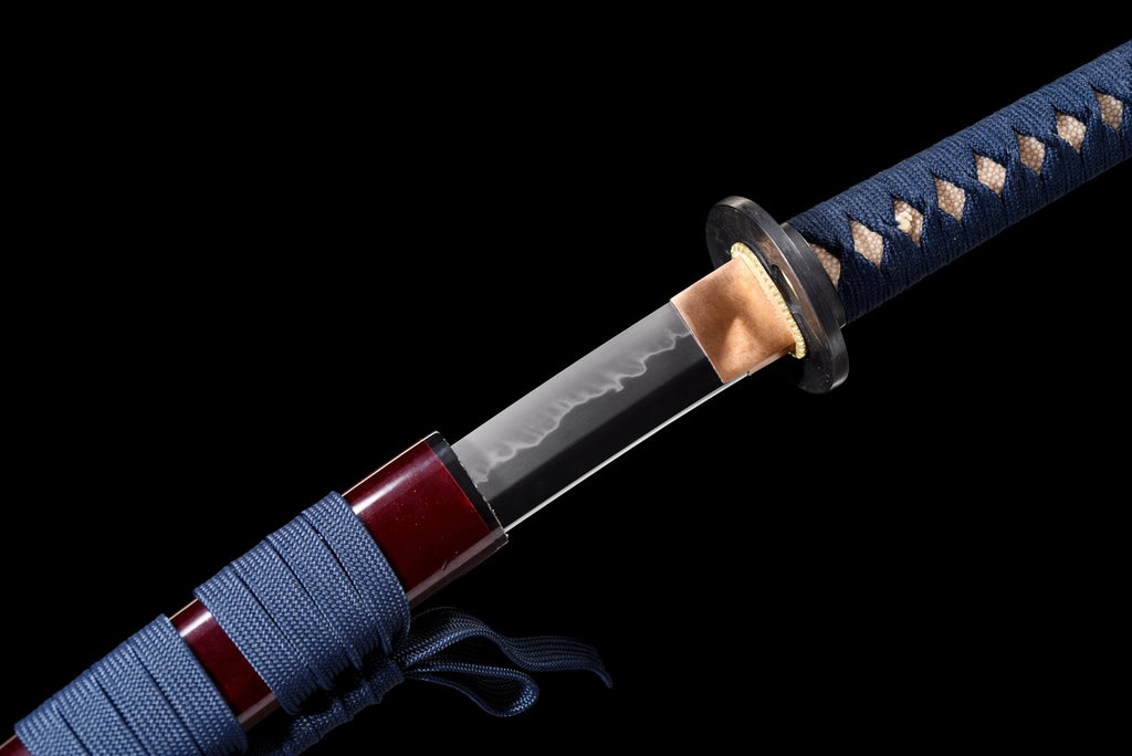 Collectable Katana Azure Lion | Hand-Forged High Carbon Clay-Tempered Blade with Chōji Hamon | Polished Edge | Red Gloss Lacquer Saya | Genuine Rayskin