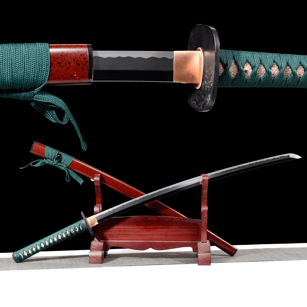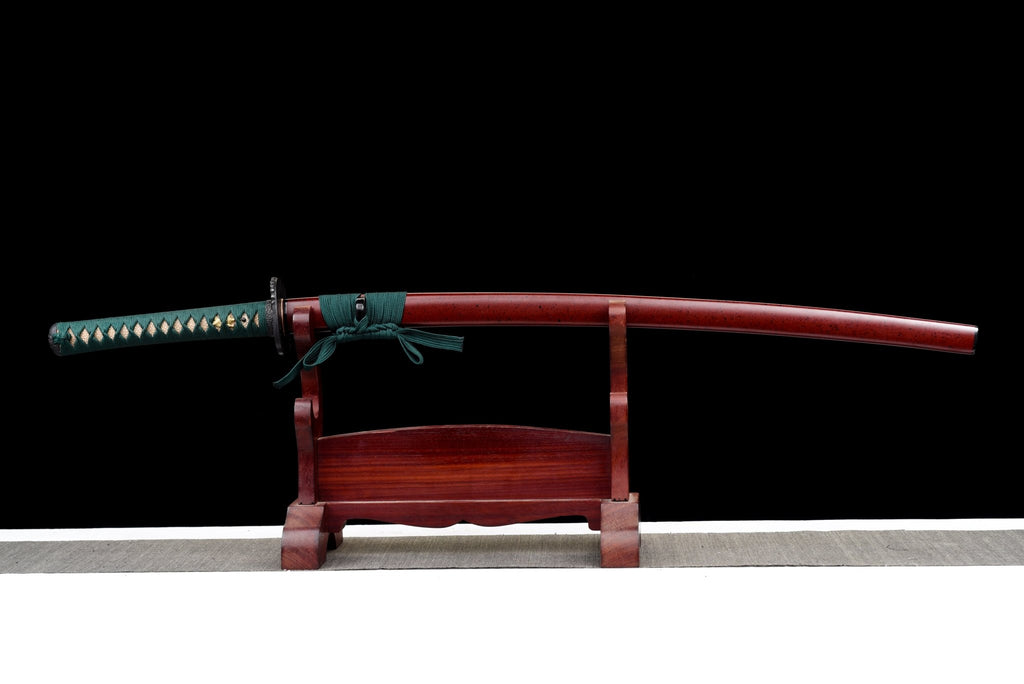 Collectable Katana Verdant Lion | Hand-Forged Folded High Carbon Clay Tempered Blade | Polished Edge | Red Lacquer Saya | Genuine Rayskin