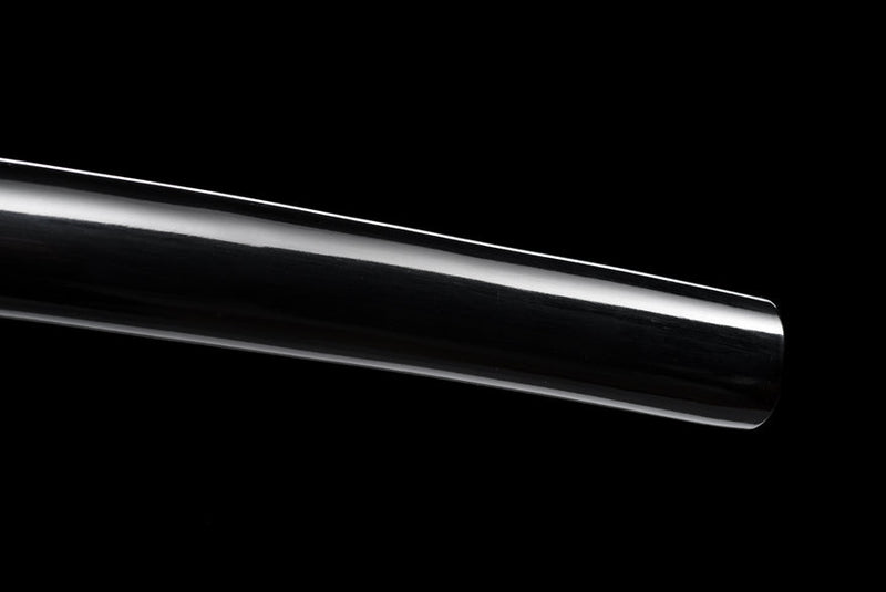 The saya is deep black, giving the sword a timeless and understated presence. A black sageo complements the overall design, and the tsuka is wrapped in black ito over a white Genuine rayskin, providing a secure and confident grip.