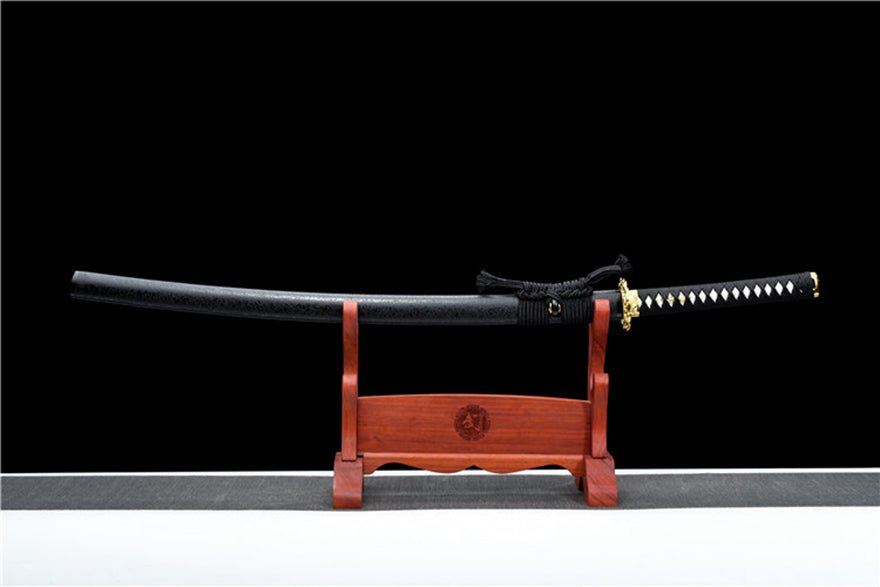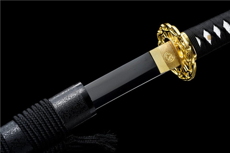 Katana Golden Lock | Full Tang Spring Steel Blade | Polished Edge | Black Saya