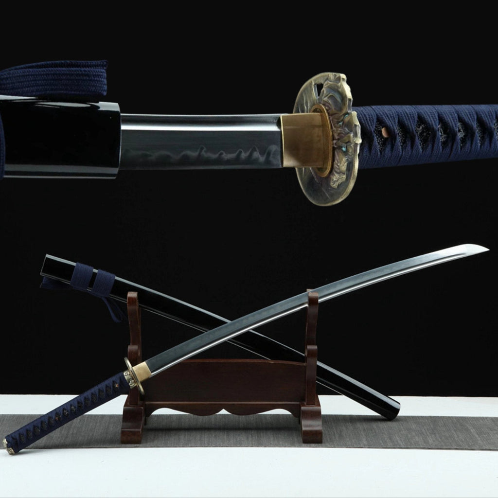 The Moren (“Silent Shade”) is a finely crafted full-tang katana forged from T10 clay-tempered steel, combining cutting precision, durability, and refined visual balance. Its shinogi-zukuri blade geometry ensures reliable strength and stability, making it suitable for both martial practice and elegant display.
