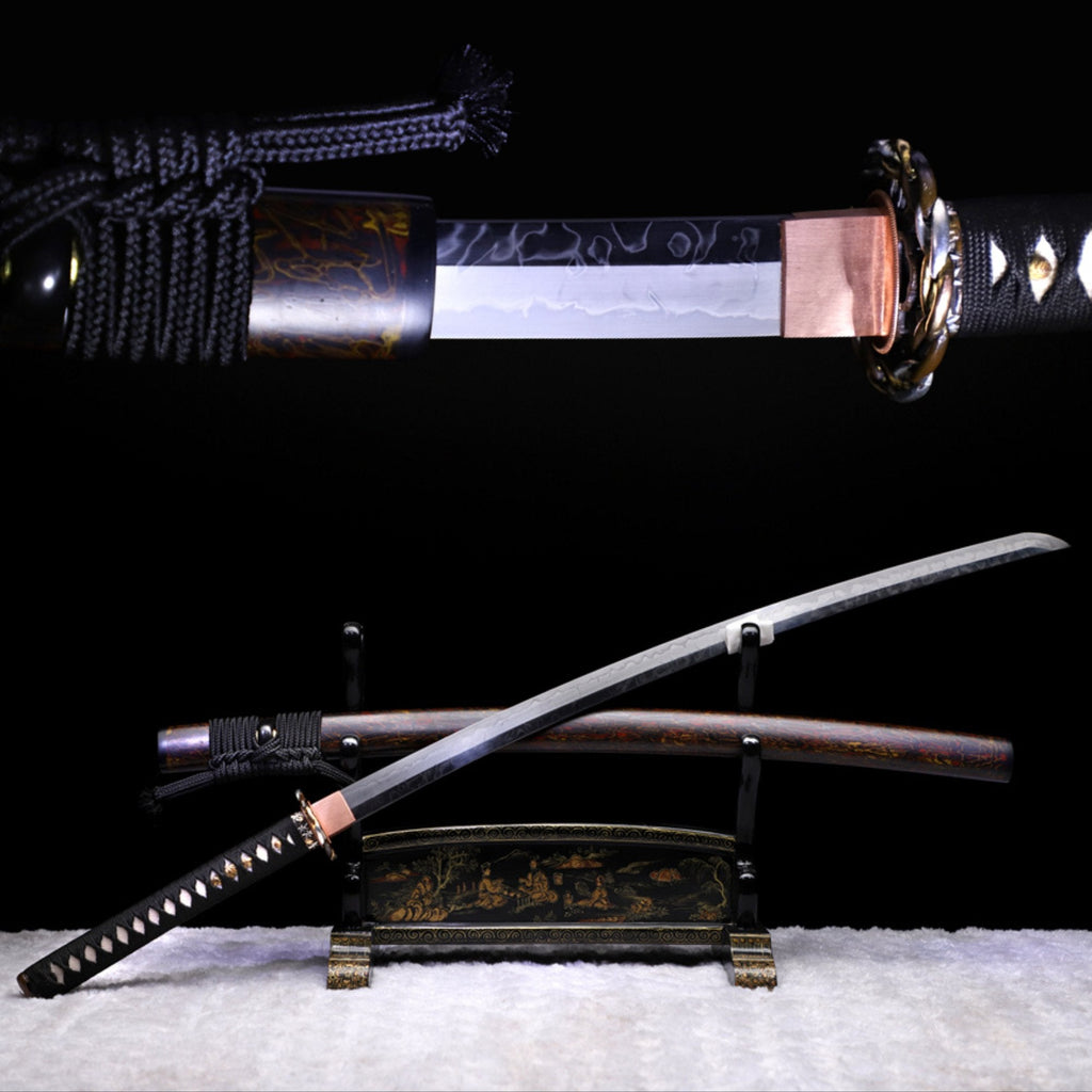 Collectable Katana T10 Clay Tempered Steel Blade Japanese Samurai Sword Tiger Huban Tsuba Handmade Wood Saya
