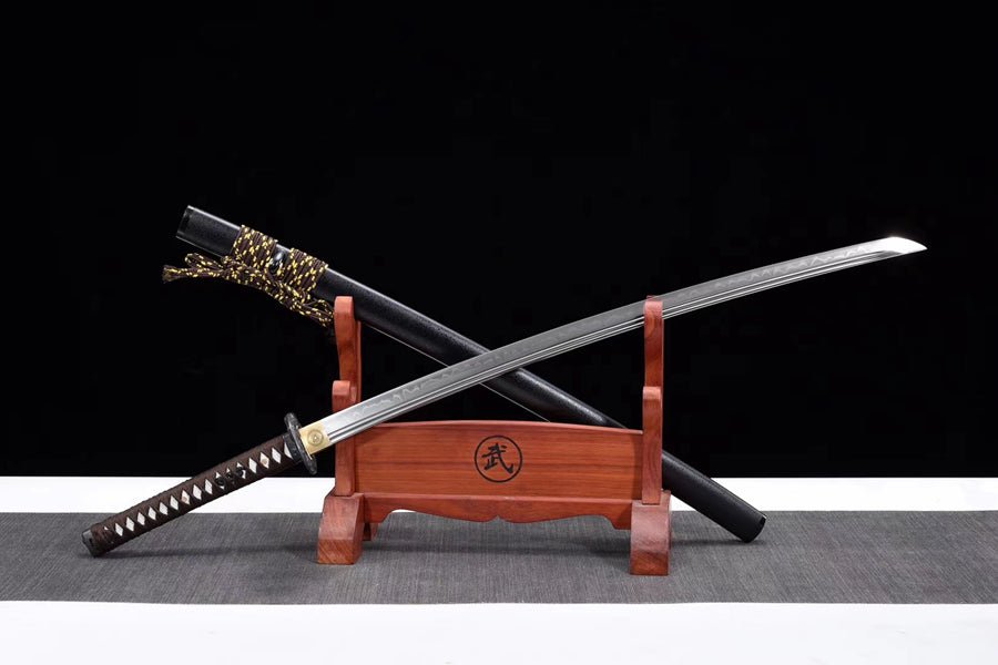 Katana Toutao | Full Tang T10 Clay Tempered Steel Blade | Polished Edge | Black Saya