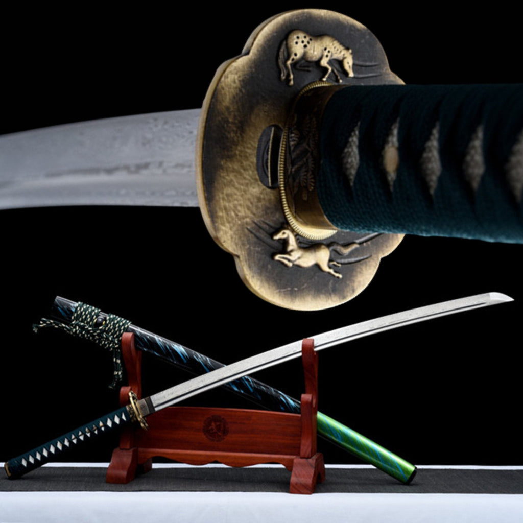 The Katana Vault of Heaven is the perfect combination of beauty and durability. Crafted with Damascus folded steel and a deep blue saya, this high-quality katana is sure to make a statement. Its impressive craftsmanship ensures that it makes a lasting impression.