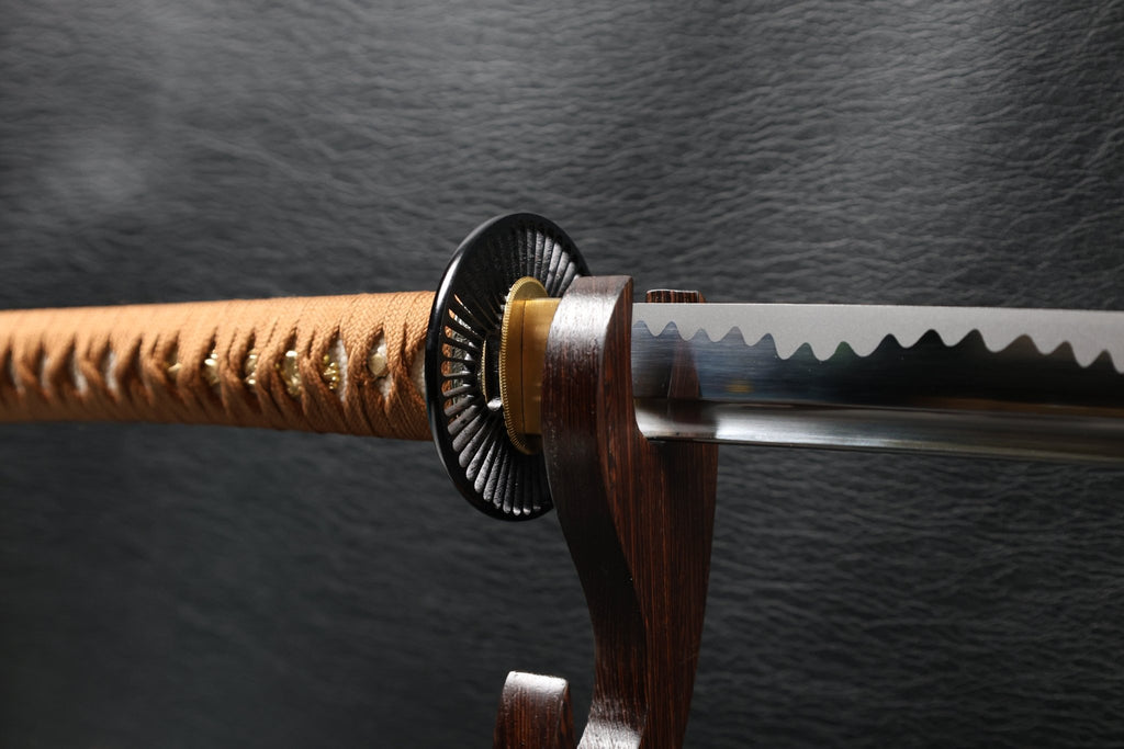 KSA “Qing” Series – EarthwaveDragon Katana | Performance Spring Steel Blade | Decorative Chōji Midare Hamon with Shinken-hi | Brown Saya | Genuine Rayskin Handle