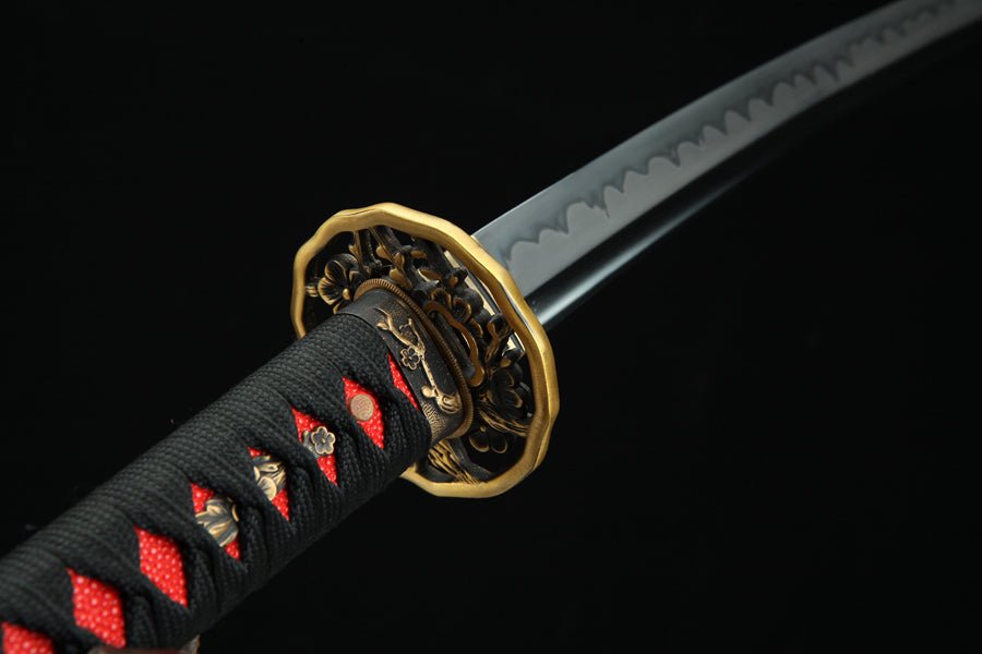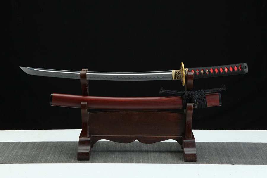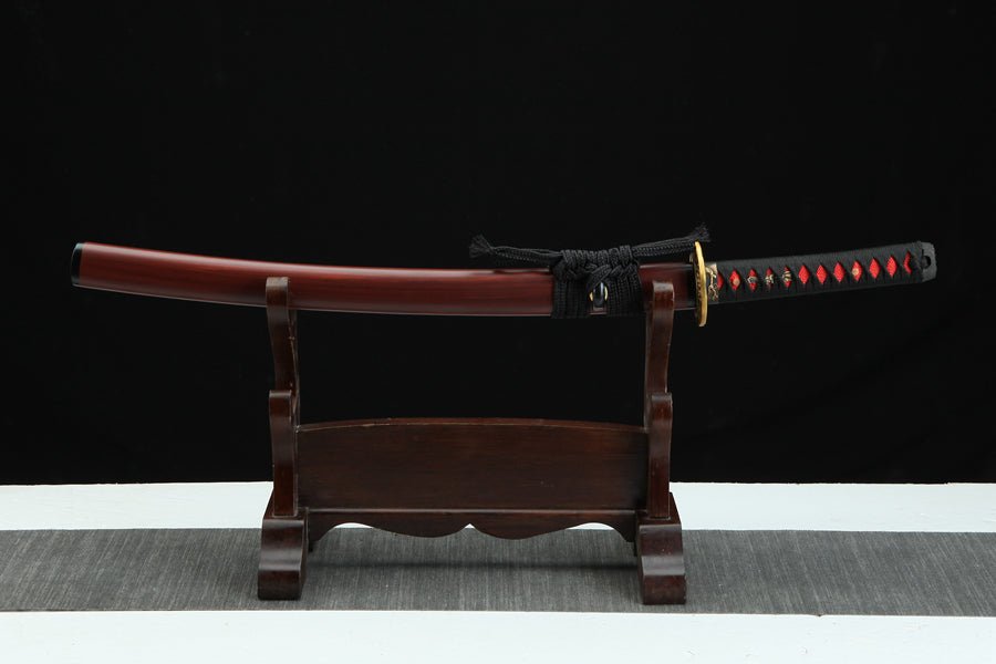 Wakizashi Sword Yanhui T10 Clay Tempered Red Saya 研灰