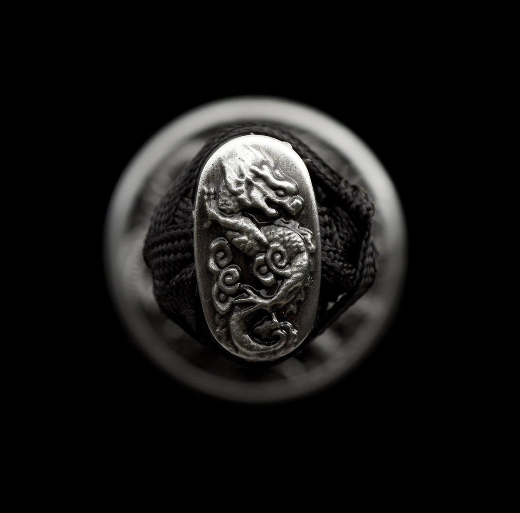The blade is made from high-density hardwood with a flowing curvature and a single bo-hi (groove), enhancing swing realism and reducing weight. The tsuba is cast in a detailed openwork dragon motif, evoking mythical energy. The tsuka is wrapped in black cord over red underlayer, creating a dramatic diamond pattern, with menuki hidden within the folds. The habaki is copper-toned for added realism, while the full-tang structure ensures durability and proper balance during practice.