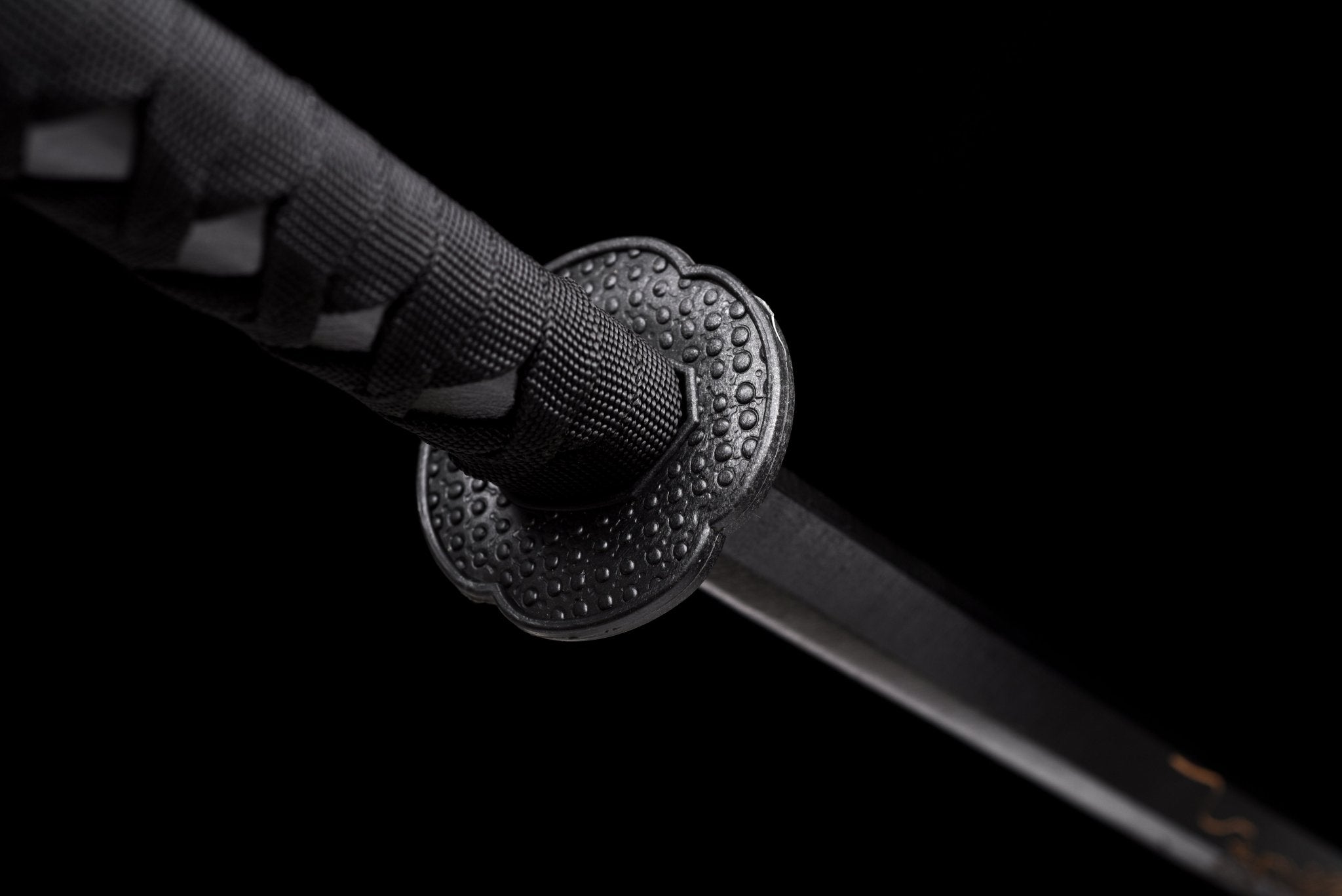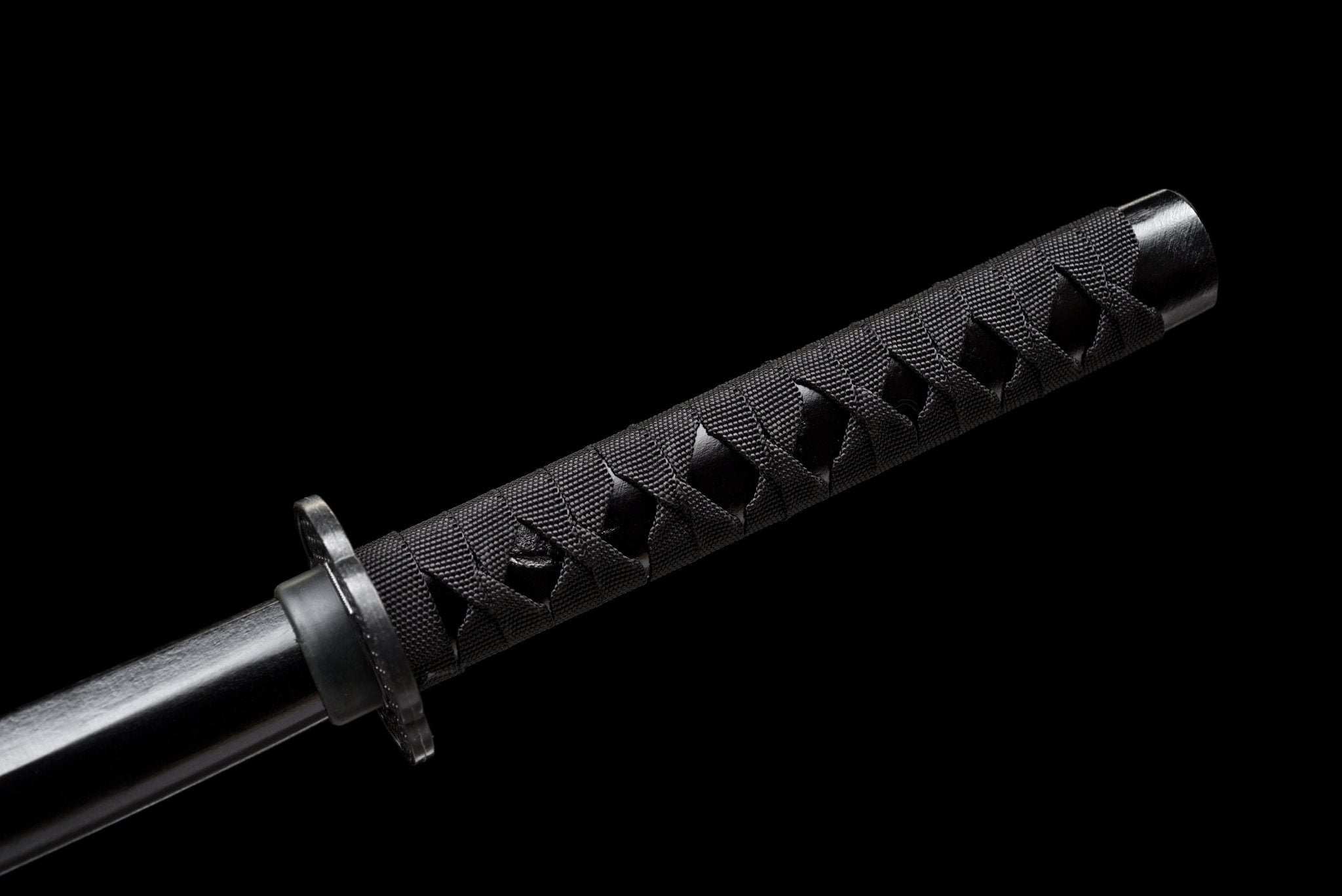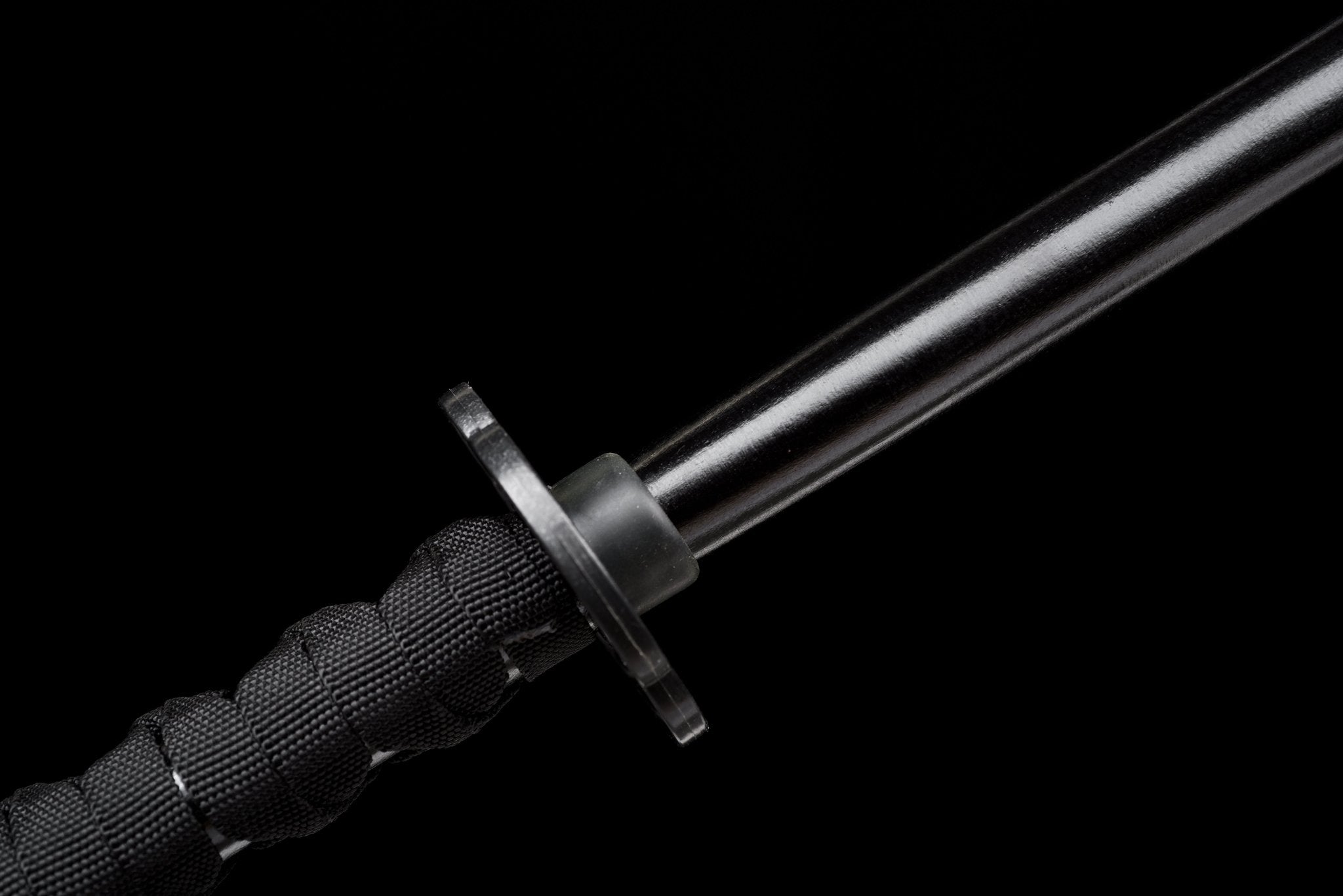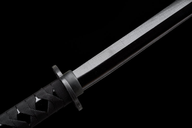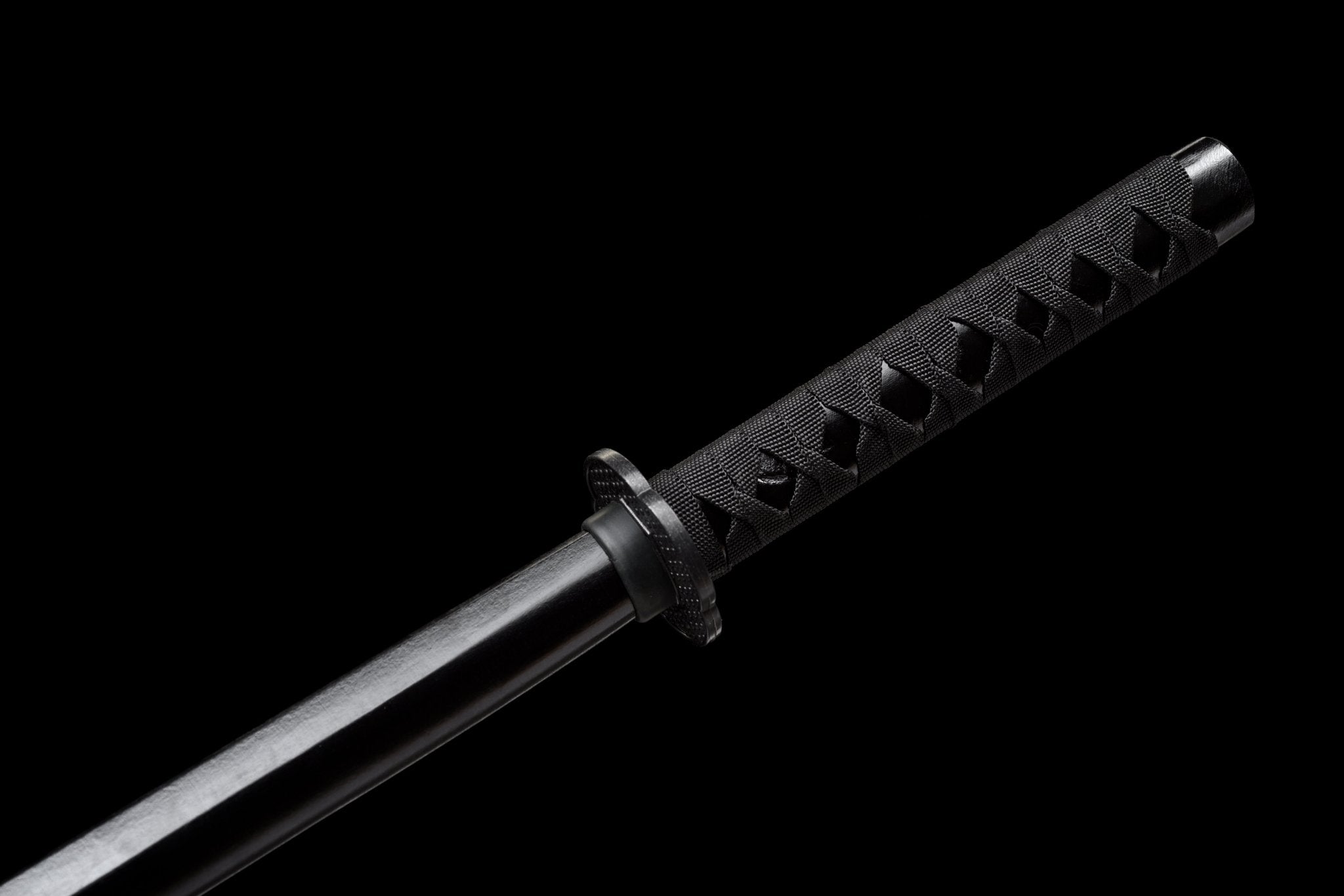 This bokken-style sword does not include a scabbard and is designed for solo kata practice, paired drills, or collection display. The no-nonsense tsuba, all-black wrap, and straight geometric edge evoke precision and control in every movement.
